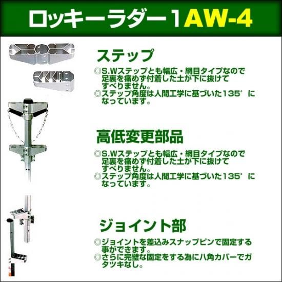 巴化成工業 【4m】【Wステップ】ロッキーラダー1 /AW-4 (2m×2) 全Wステップ 木登り1本はしご
