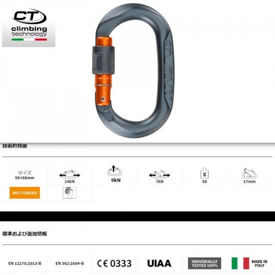 【メール便】 climbing technology クライミングテクノロジー カラビナ OVX SG スクリューゲート 2C50100SHG | ロープアクセス 高所作業 レスキュー